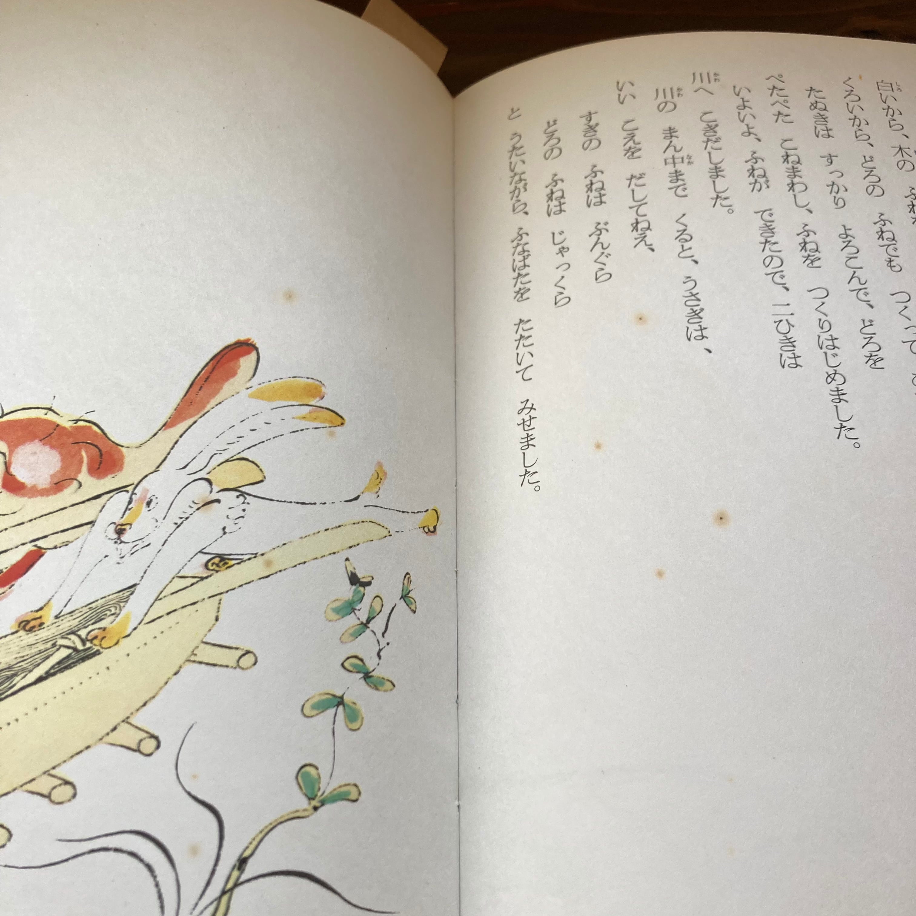 等々の楽しい表現が、いかにものんびりした昔話らしく(いや、タヌキにとっては、のんびりしている場合ではないのだけれど、、、)声に出して読むと心地よい。